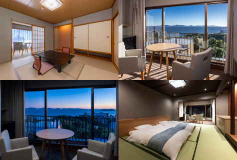 三谷溫泉全年氣候溫暖和煦。敝飯店落成於弘法山中,正面可欣賞廣闊的三河灣。不僅提供誠心誠意的待客服務,更透過三河經典的單獨源泉「曙光之湯」來療癒您的身心。料理方面則敬請品嚐集結了嚴選海產及料理師傅手藝的正宗會席料理。我們在此由衷恭候著各位的大駕光臨。
